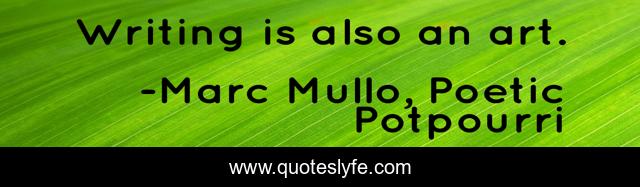 "Marc Mullo, Poetic Potpourri Quotes." Quoteslyfe.com, 2025. Fri. 05 Dec. 2025. <https://www.quoteslyfe.com/quote/Writing-is-also-an-art-233384>.