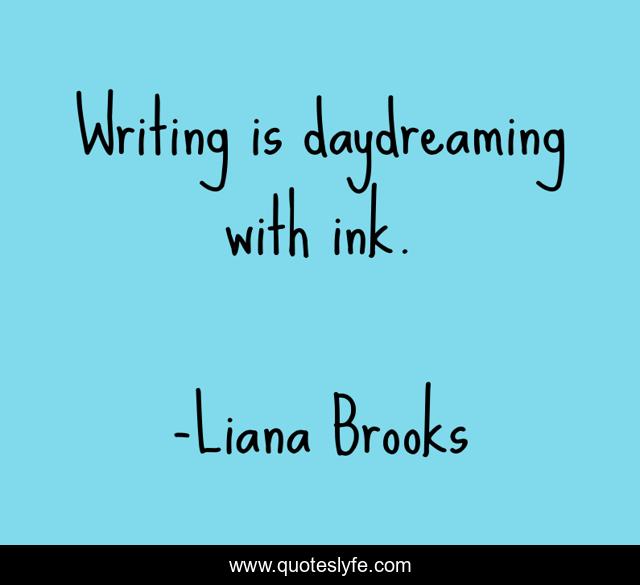 This page presents the quote "Writing is daydreaming with ink.". Author of this quote is Liana Brooks. This quote is about writing-process, dream, writing,.