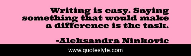 This page presents the quote "Writing is easy. Saying something that would make a difference is the task.". Author of this quote is Aleksandra Ninkovic. This quote is about making-a-difference, writing-process, hard-work, writing,.