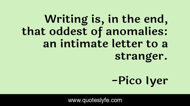 This page presents the quote "Writing is, in the end, that oddest of anomalies: an intimate letter to a stranger.". Author of this quote is Pico Iyer. .