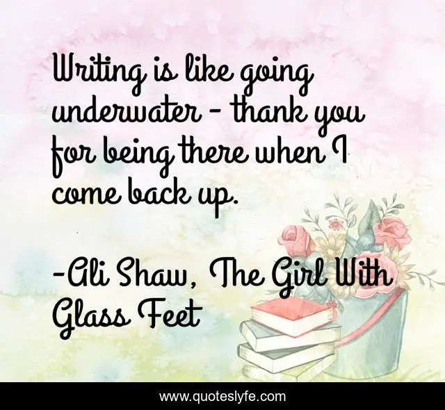 "Ali Shaw, The Girl With Glass Feet Quotes." Quoteslyfe.com, 2025. Fri. 05 Dec. 2025. <https://www.quoteslyfe.com/quote/Writing-is-like-going-underwater-thank-you-27278>.