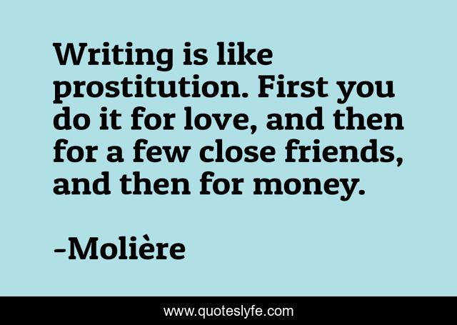 This page presents the quote "Writing is like prostitution. First you do it for love, and then for a few close friends, and then for money.". Author of this quote is Molière. .