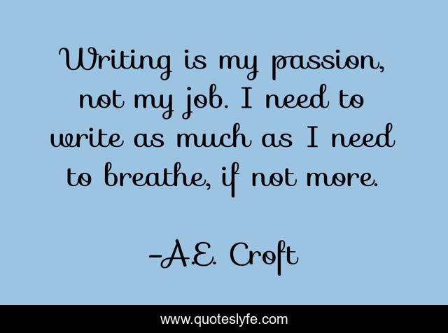 This page presents the quote "Writing is my passion, not my job. I need to write as much as I need to breathe, if not more.". Author of this quote is A.E. Croft. This quote is about humorous, enthusiasm, artistic, inspirational, writing,.