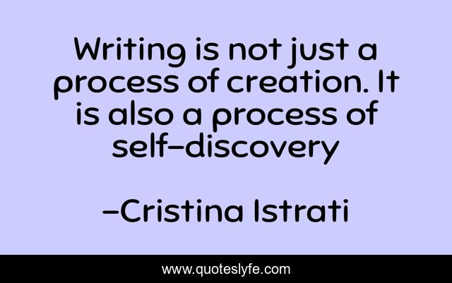 This page presents the quote "Writing is not just a process of creation. It is also a process of self-discovery". Author of this quote is Cristina Istrati. This quote is about process, cristina-istrati, writing,.