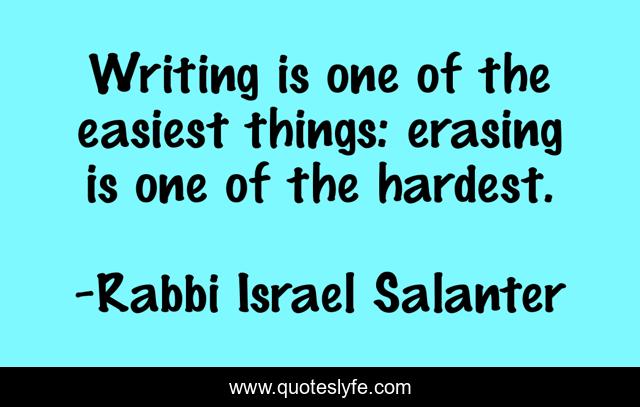 This page presents the quote "Writing is one of the easiest things: erasing is one of the hardest.". Author of this quote is Rabbi Israel Salanter. This quote is about writers, writing,.