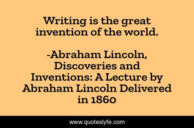 "Abraham Lincoln, Discoveries and Inventions: A Lecture by Abraham Lincoln Delivered in 1860 Quotes." Quoteslyfe.com, 2025. Fri. 05 Dec. 2025. <https://www.quoteslyfe.com/quote/Writing-is-the-great-invention-of-the-28010>.