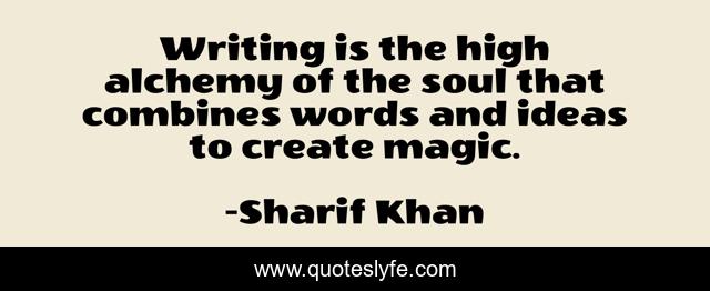 This page presents the quote "Writing is the high alchemy of the soul that combines words and ideas to create magic.". Author of this quote is Sharif Khan. This quote is about creative-writing, writers, writing,.