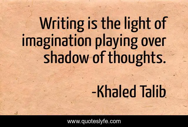This page presents the quote "Writing is the light of imagination playing over shadow of thoughts.". Author of this quote is Khaled Talib. This quote is about author, script, muses, writer, poetry, imagination, pen, books,.