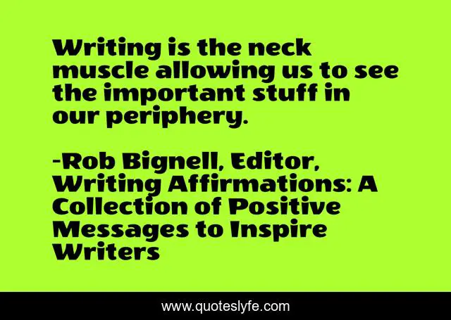 "Rob Bignell, Editor, Writing Affirmations: A Collection of Positive Messages to Inspire Writers Quotes." Quoteslyfe.com, 2025. Mon. 08 Dec. 2025. <https://www.quoteslyfe.com/quote/Writing-is-the-neck-muscle-allowing-us-215000>.
