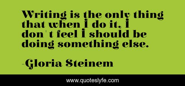 This page presents the quote "Writing is the only thing that when I do it, I don't feel I should be doing something else.". Author of this quote is Gloria Steinem. .