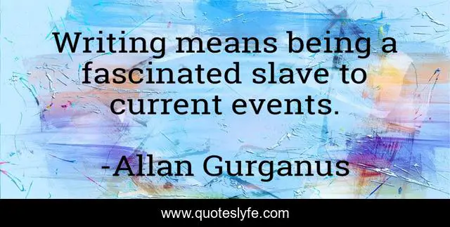 This page presents the quote "Writing means being a fascinated slave to current events.". Author of this quote is Allan Gurganus. .
