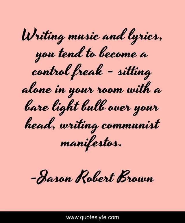 This page presents the quote "Writing music and lyrics, you tend to become a control freak - sitting alone in your room with a bare light bulb over your head, writing communist manifestos.". Author of this quote is Jason Robert Brown. This quote is about light, music, writing,.