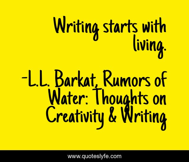 "L.L. Barkat, Rumors of Water: Thoughts on Creativity & Writing Quotes." Quoteslyfe.com, 2025. Fri. 05 Dec. 2025. <https://www.quoteslyfe.com/quote/Writing-starts-with-living-28235>.