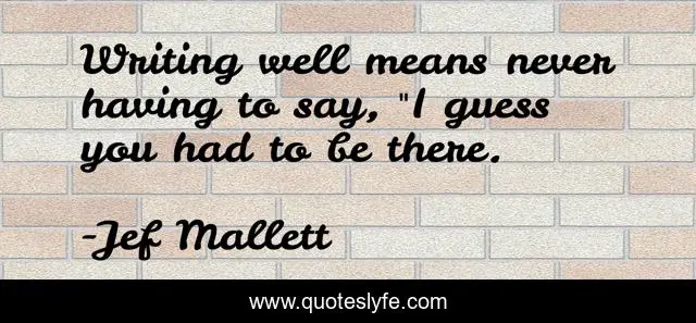 This page presents the quote "Writing well means never having to say, "I guess you had to be there.". Author of this quote is Jef Mallett. This quote is about writers, writing,.