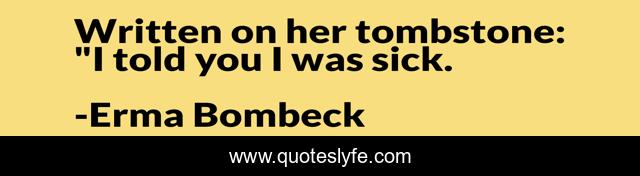 This page presents the quote "Written on her tombstone: "I told you I was sick.". Author of this quote is Erma Bombeck. .