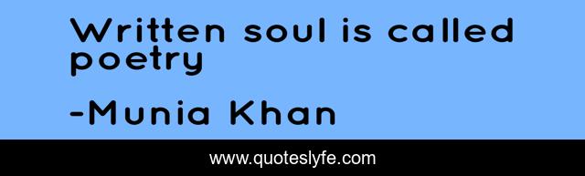This page presents the quote "Written soul is called poetry". Author of this quote is Munia Khan. This quote is about definition, soul, poem, poetry-love, poetry, souls, poetry-life, written, love-for-poetry,.