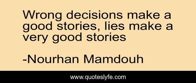 "Nourhan Mamdouh Quotes." Quoteslyfe.com, 2025. Fri. 05 Dec. 2025. <https://www.quoteslyfe.com/quote/Wrong-decisions-make-a-good-stories-lies-167526>.