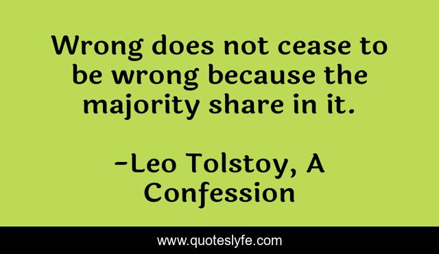 "Leo Tolstoy, A Confession Quotes." Quoteslyfe.com, 2025. Fri. 05 Dec. 2025. <https://www.quoteslyfe.com/quote/Wrong-does-not-cease-to-be-wrong-8963>.