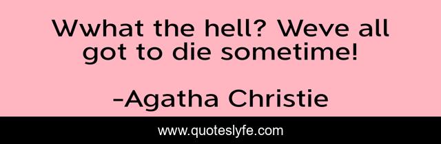 This page presents the quote "Wwhat the hell? Weve all got to die sometime!". Author of this quote is Agatha Christie. This quote is about die, hell, christie, moving-finger,.