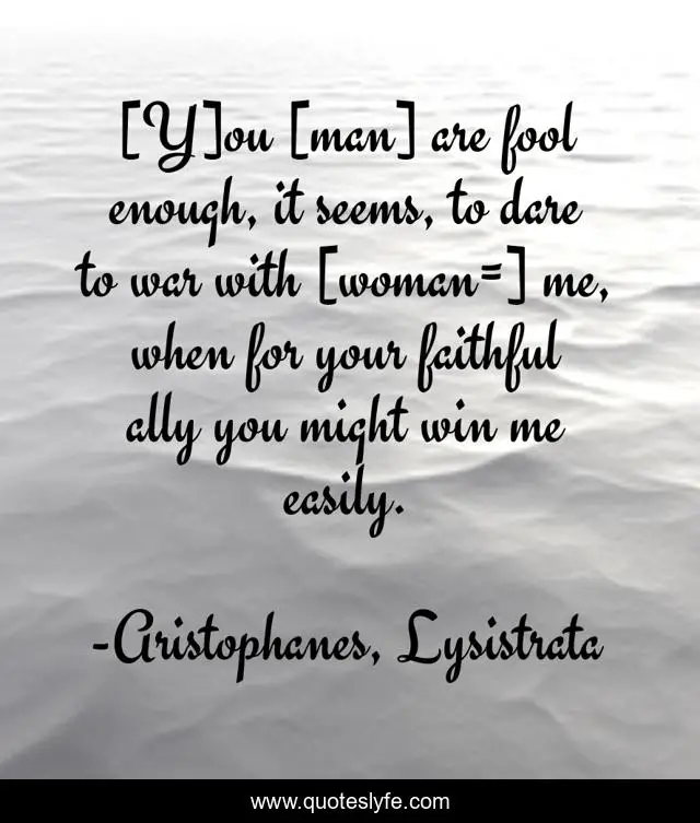 "Aristophanes, Lysistrata Quotes." Quoteslyfe.com, 2025. Mon. 08 Dec. 2025. <https://www.quoteslyfe.com/quote/Y-ou-man-are-fool-enough-it-12664>.