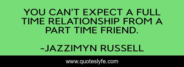 This page presents the quote "YOU CAN'T EXPECT A FULL TIME RELATIONSHIP FROM A PART TIME FRIEND.". Author of this quote is JAZZIMYN RUSSELL. .