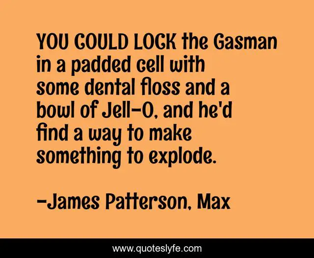 This page presents the quote "YOU COULD LOCK the Gasman in a padded cell with some dental floss and a bowl of Jell-O, and he'd find a way to make something to explode.". Author of this quote is James Patterson, Max. This quote is about inventiveness, talent,.