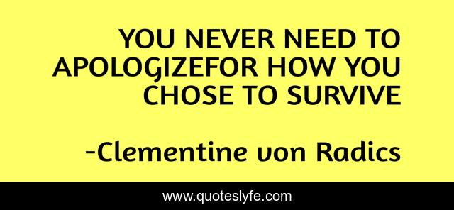 This page presents the quote "YOU NEVER NEED TO APOLOGIZEFOR HOW YOU CHOSE TO SURVIVE". Author of this quote is Clementine von Radics. .
