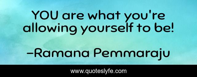 This page presents the quote "YOU are what you're allowing yourself to be!". Author of this quote is Ramana Pemmaraju. This quote is about your-life, change-your-life, transformation,.