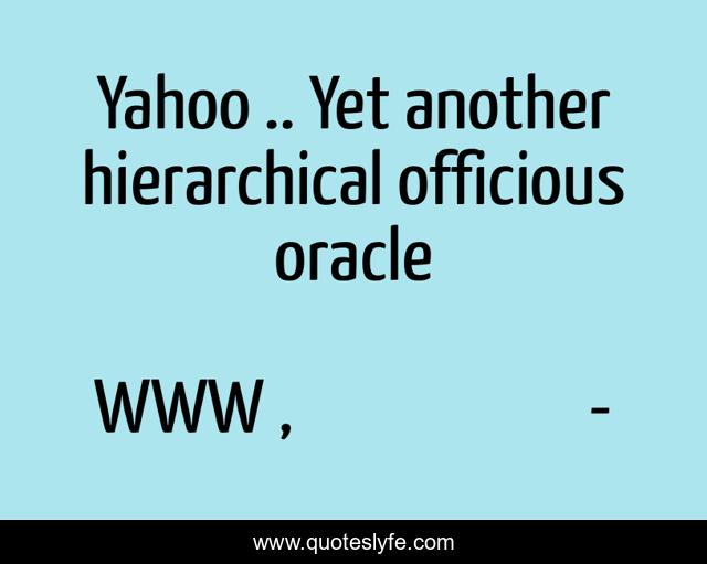 This page presents the quote "Yahoo .. Yet another hierarchical officious oracle". Author of this quote is أحمد خالد توفيق, WWW. This quote is about أحمد-خالد-توفيق, technology, yahoo,.