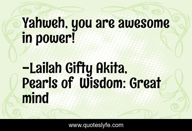 "Lailah Gifty Akita, Pearls of Wisdom: Great mind Quotes." Quoteslyfe.com, 2025. Mon. 08 Dec. 2025. <https://www.quoteslyfe.com/quote/Yahweh-you-are-awesome-in-power-201052>.