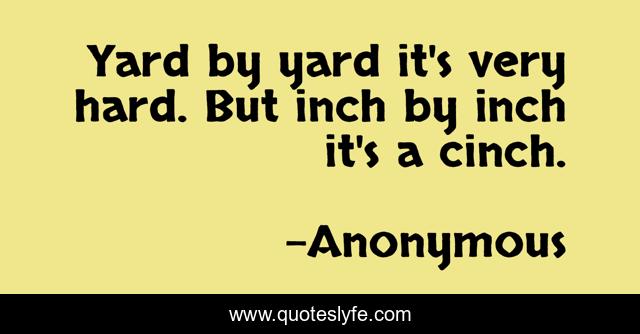 This page presents the quote "Yard by yard it's very hard. But inch by inch it's a cinch.". Author of this quote is Anonymous. .