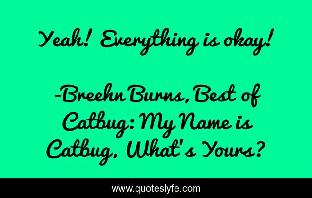 "Breehn Burns, Best of Catbug: My Name is Catbug, What's Yours? Quotes." Quoteslyfe.com, 2025. Mon. 08 Dec. 2025. <https://www.quoteslyfe.com/quote/Yeah-Everything-is-okay-235138>.