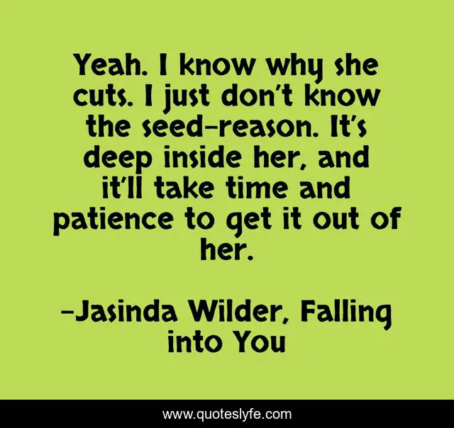 "Jasinda Wilder, Falling into You Quotes." Quoteslyfe.com, 2025. Sat. 06 Dec. 2025. <https://www.quoteslyfe.com/quote/Yeah-I-know-why-she-cuts-I-189815>.