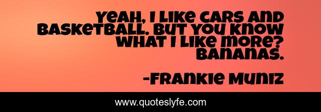 This page presents the quote "Yeah, I like cars and basketball. But you know what I like more? Bananas.". Author of this quote is Frankie Muniz. .