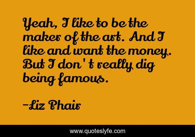 This page presents the quote "Yeah, I like to be the maker of the art. And I like and want the money. But I don't really dig being famous.". Author of this quote is Liz Phair. This quote is about money, art,.