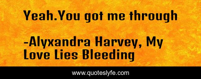 This page presents the quote "Yeah.You got me through". Author of this quote is Alyxandra Harvey, My Love Lies Bleeding. This quote is about drake-chronicles, love, dying, affection,.