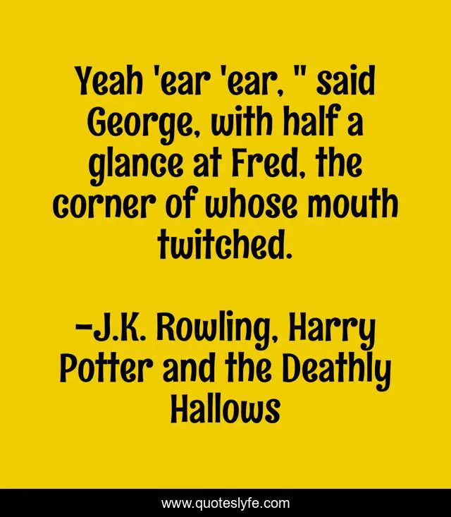 "J.K. Rowling, Harry Potter and the Deathly Hallows Quotes." Quoteslyfe.com, 2025. Mon. 08 Dec. 2025. <https://www.quoteslyfe.com/quote/Yeah-ear-ear-said-George-with-half-248964>.