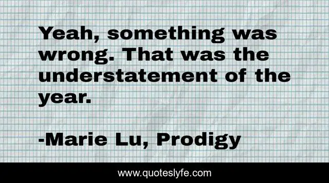 This page presents the quote "Yeah, something was wrong. That was the understatement of the year.". Author of this quote is Marie Lu, Prodigy. .