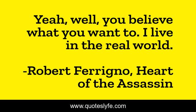 This page presents the quote "Yeah, well, you believe what you want to. I live in the real world.". Author of this quote is Robert Ferrigno, Heart of the Assassin. This quote is about real-world, believe,.