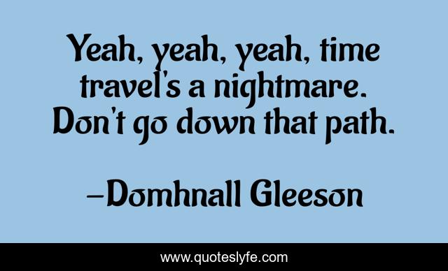 This page presents the quote "Yeah, yeah, yeah, time travel's a nightmare. Don't go down that path.". Author of this quote is Domhnall Gleeson. This quote is about down, path, time,.