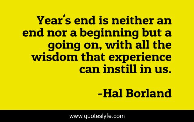 This page presents the quote "Year's end is neither an end nor a beginning but a going on, with all the wisdom that experience can instill in us.". Author of this quote is Hal Borland. This quote is about experience, wisdom,.