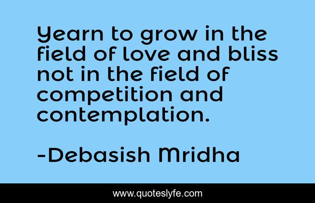 This page presents the quote "Yearn to grow in the field of love and bliss not in the field of competition and contemplation.". Author of this quote is Debasish Mridha. This quote is about completion, yearn-to-grow, debasish, contemplation, mridha, philosophy, debasish-mridha, love-and-bliss,.