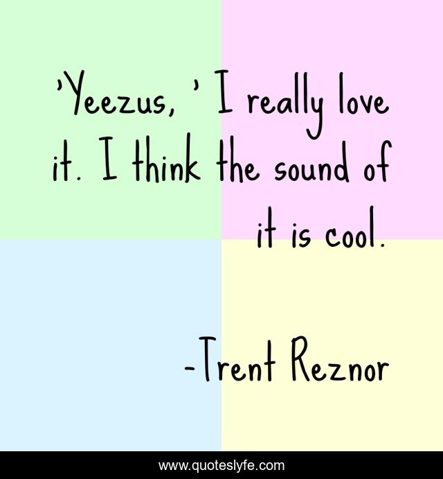 This page presents the quote "'Yeezus, ' I really love it. I think the sound of it is cool.". Author of this quote is Trent Reznor. This quote is about sound, love, think, affection,.