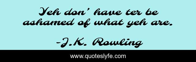 This page presents the quote "Yeh don’ have ter be ashamed of what yeh are.". Author of this quote is J.K. Rowling. This quote is about hagrid, harry-potter,.