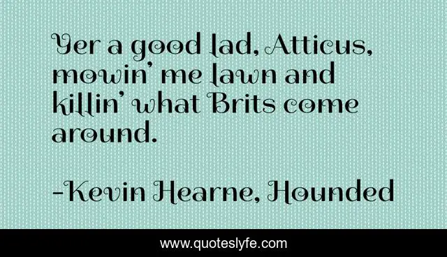 "Kevin Hearne, Hounded Quotes." Quoteslyfe.com, 2025. Tue. 09 Dec. 2025. <https://www.quoteslyfe.com/quote/Yer-a-good-lad-Atticus-mowin-me-20789>.