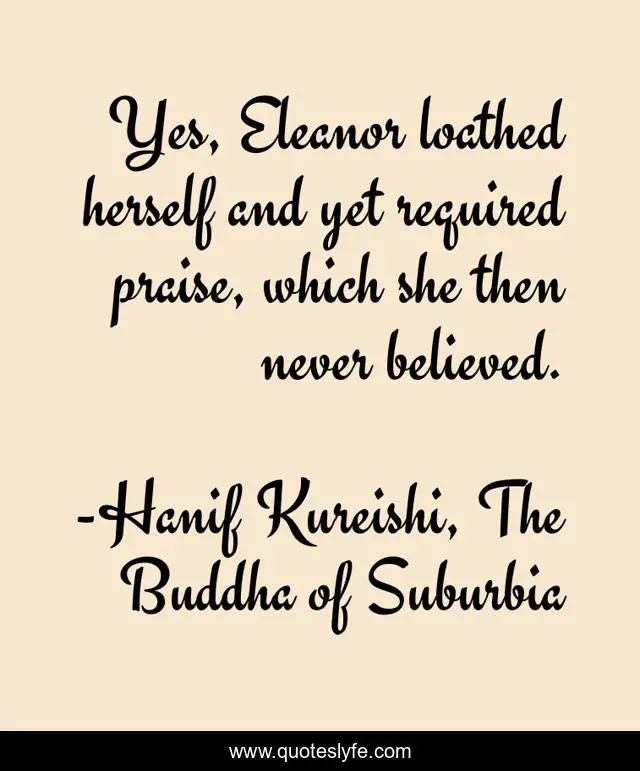 "Hanif Kureishi, The Buddha of Suburbia Quotes." Quoteslyfe.com, 2025. Sat. 06 Dec. 2025. <https://www.quoteslyfe.com/quote/Yes-Eleanor-loathed-herself-and-yet-required-142870>.