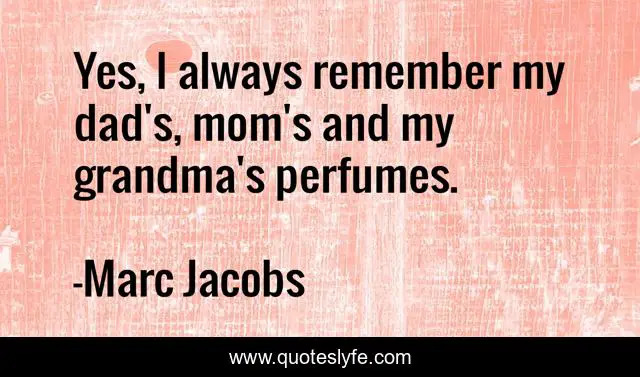 This page presents the quote "Yes, I always remember my dad's, mom's and my grandma's perfumes.". Author of this quote is Marc Jacobs. This quote is about always, yes, remember,.