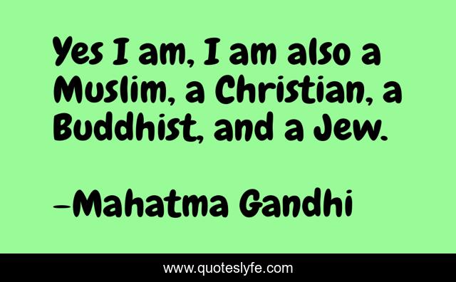 This page presents the quote "Yes I am, I am also a Muslim, a Christian, a Buddhist, and a Jew.". Author of this quote is Mahatma Gandhi. This quote is about christian, jew, hindu, muslim, christianity, religion, buddhism, hinduism, judaism,.