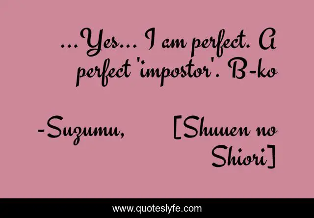 "Suzumu, 終焉の栞 [Shuuen no Shiori] Quotes." Quoteslyfe.com, 2025. Fri. 05 Dec. 2025. <https://www.quoteslyfe.com/quote/Yes-I-am-perfect-A-perfect-impostor-146166>.