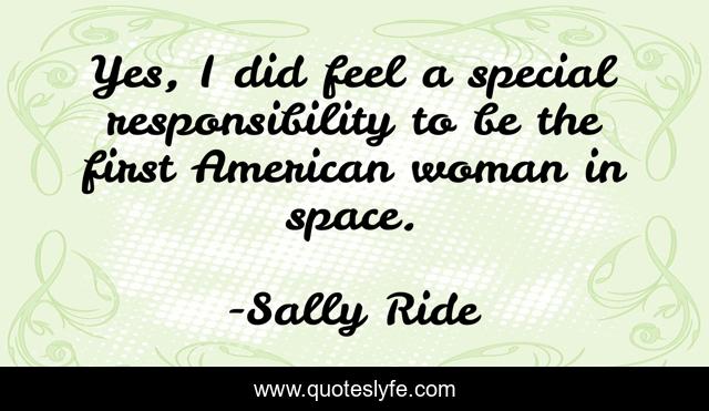 "Sally Ride Quotes." Quoteslyfe.com, 2025. Mon. 08 Dec. 2025. <https://www.quoteslyfe.com/quote/Yes-I-did-feel-a-special-responsibility-289484>.